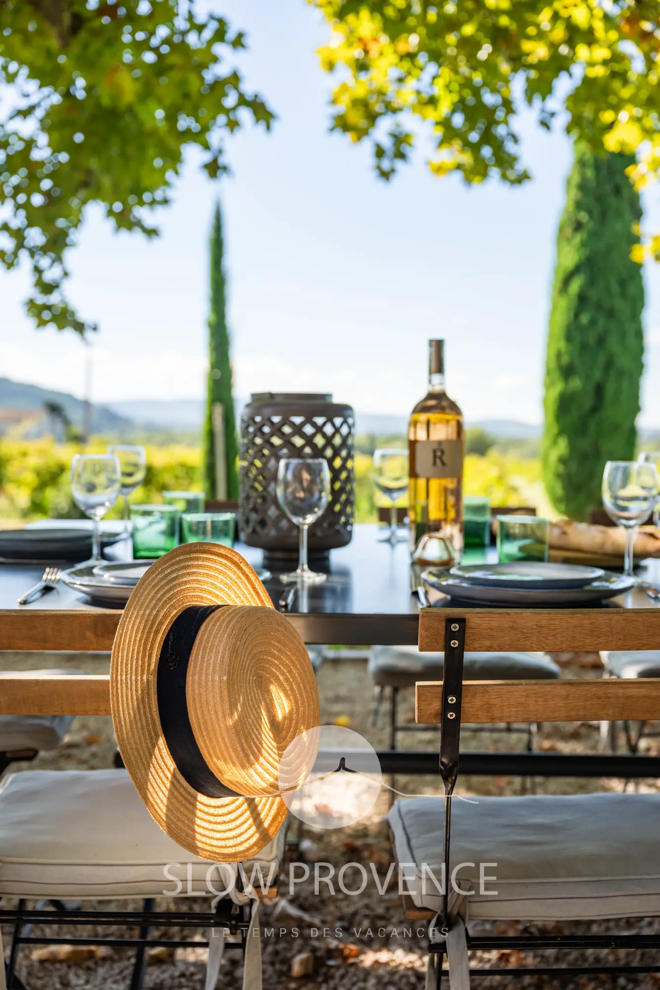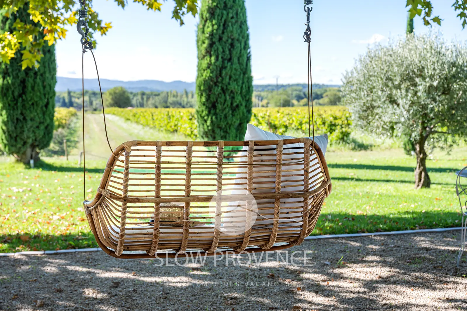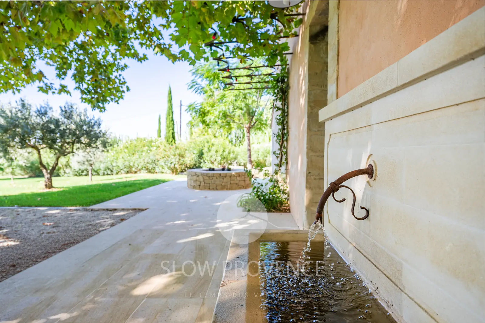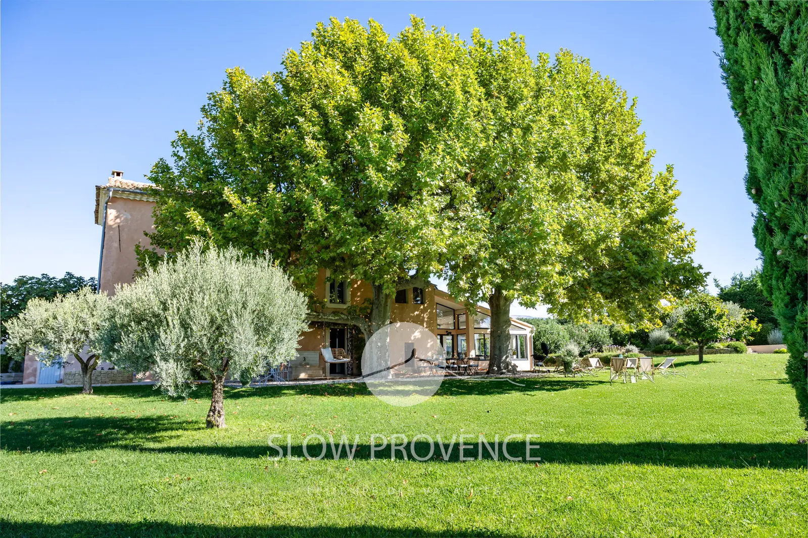 - Terrace shaded by two century-old plane trees: table and chairs for 10; view over the vineyards;