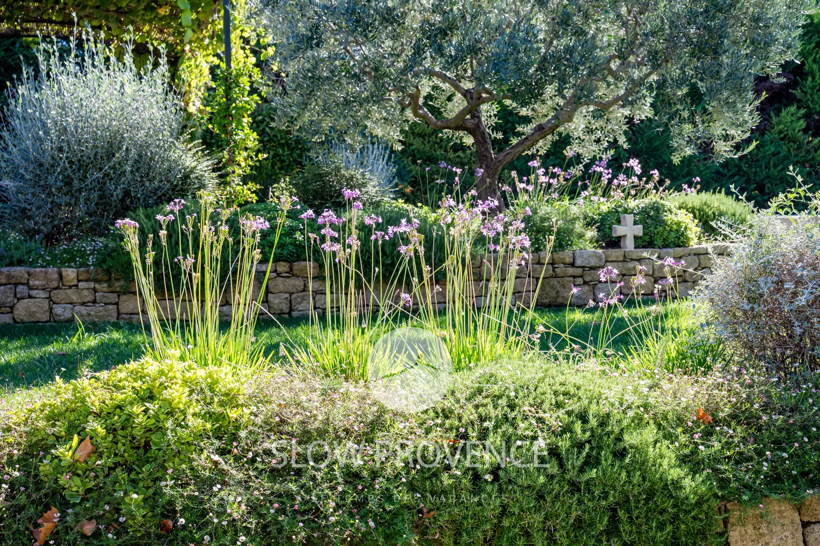 - Large unfenced garden of 2500 sqm with lawn and flowers; secured by an electric gate;