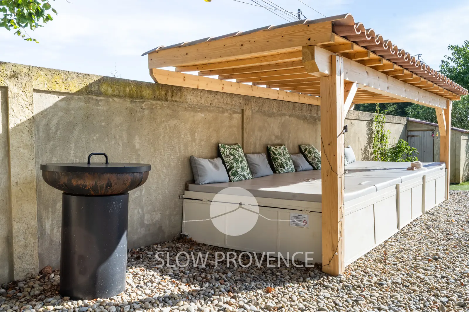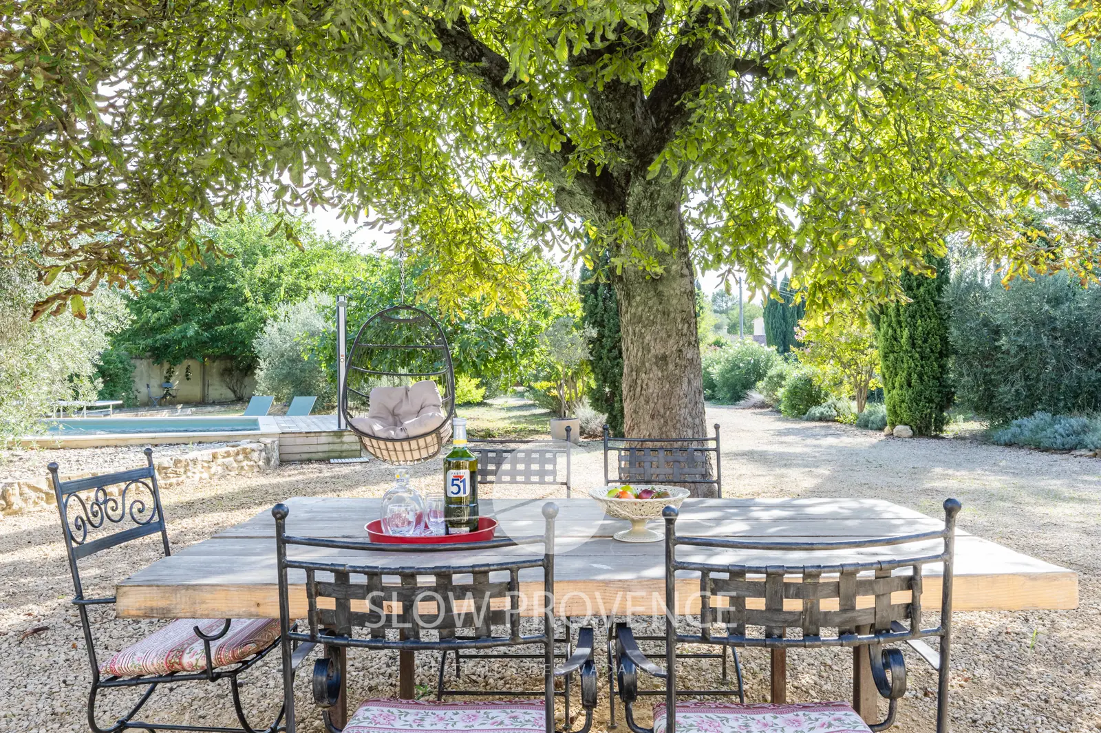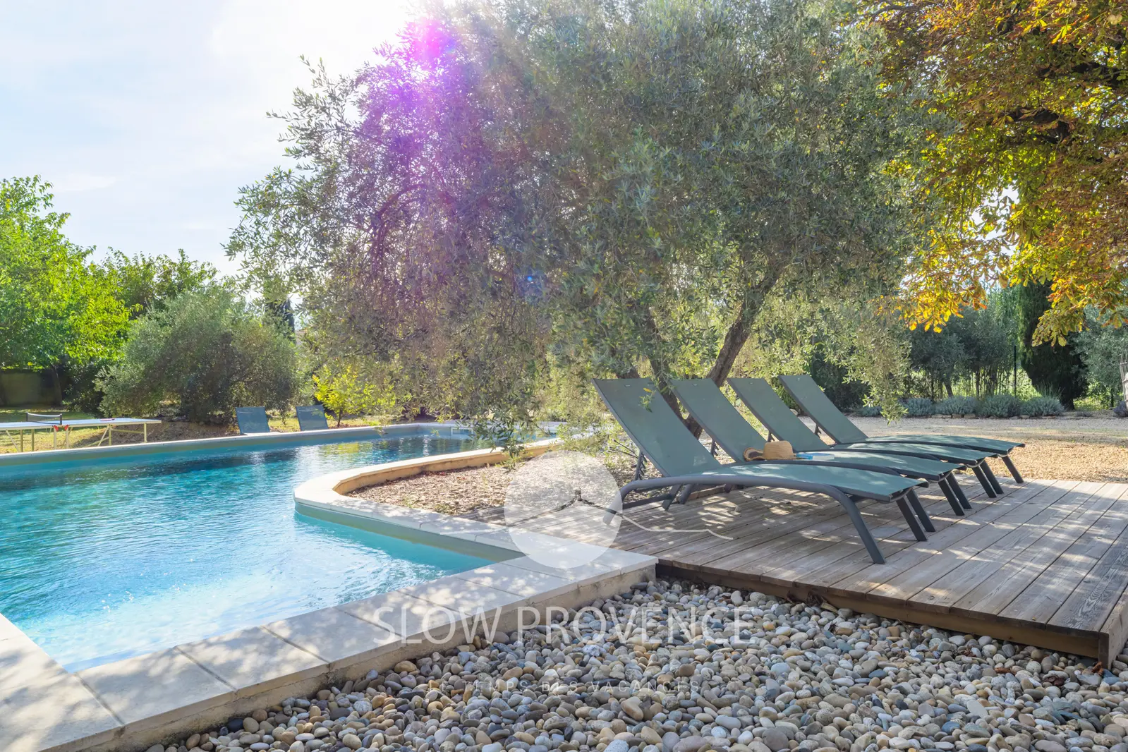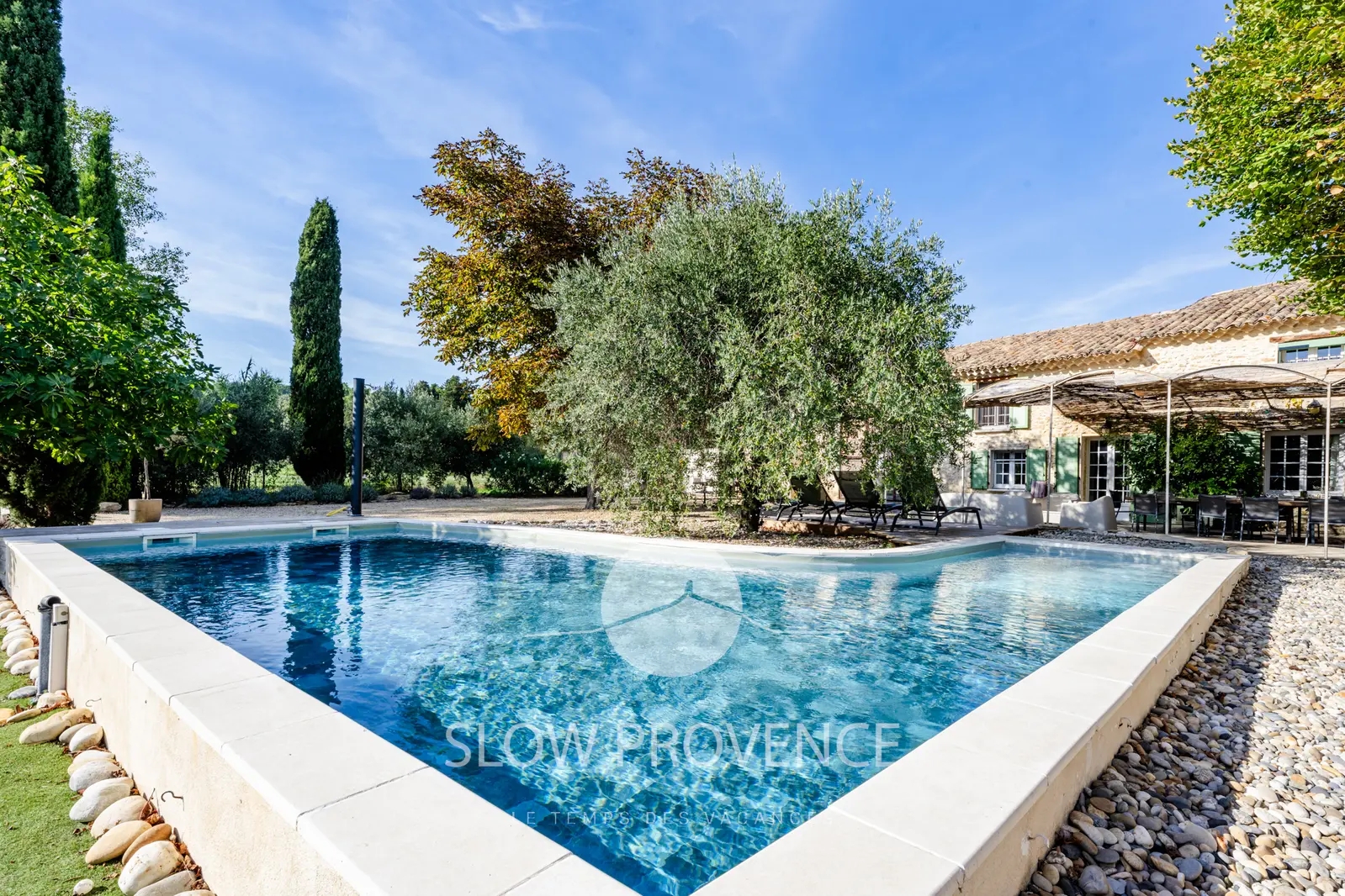 "Mas Provence" is located halfway between the villages of Mornas and Uchaux, in the north-west of the Vaucluse in the Rhône valley. The farmhouse lies on a completely enclosed 3000m2 parcel of land and was fully renovated in 2012 .