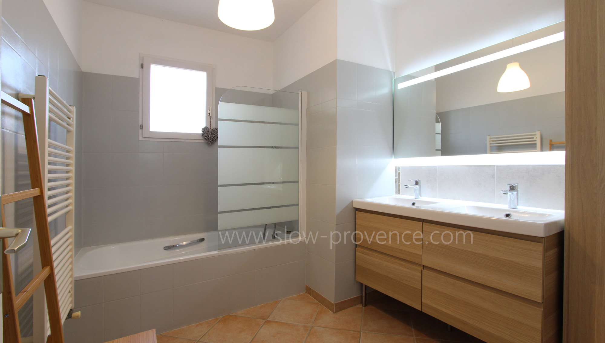 - Bathroom: bathtub, double wahsbasin, hair dryer;