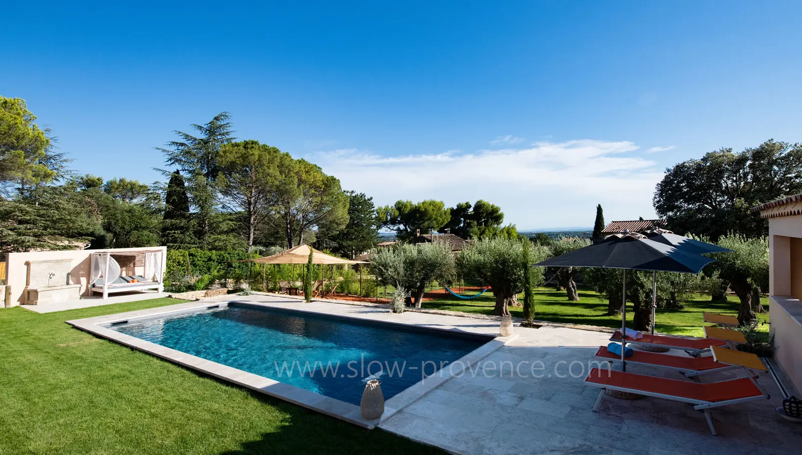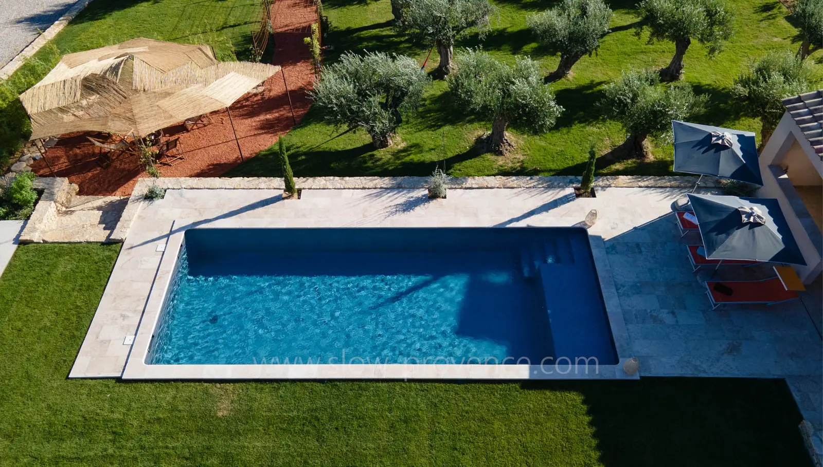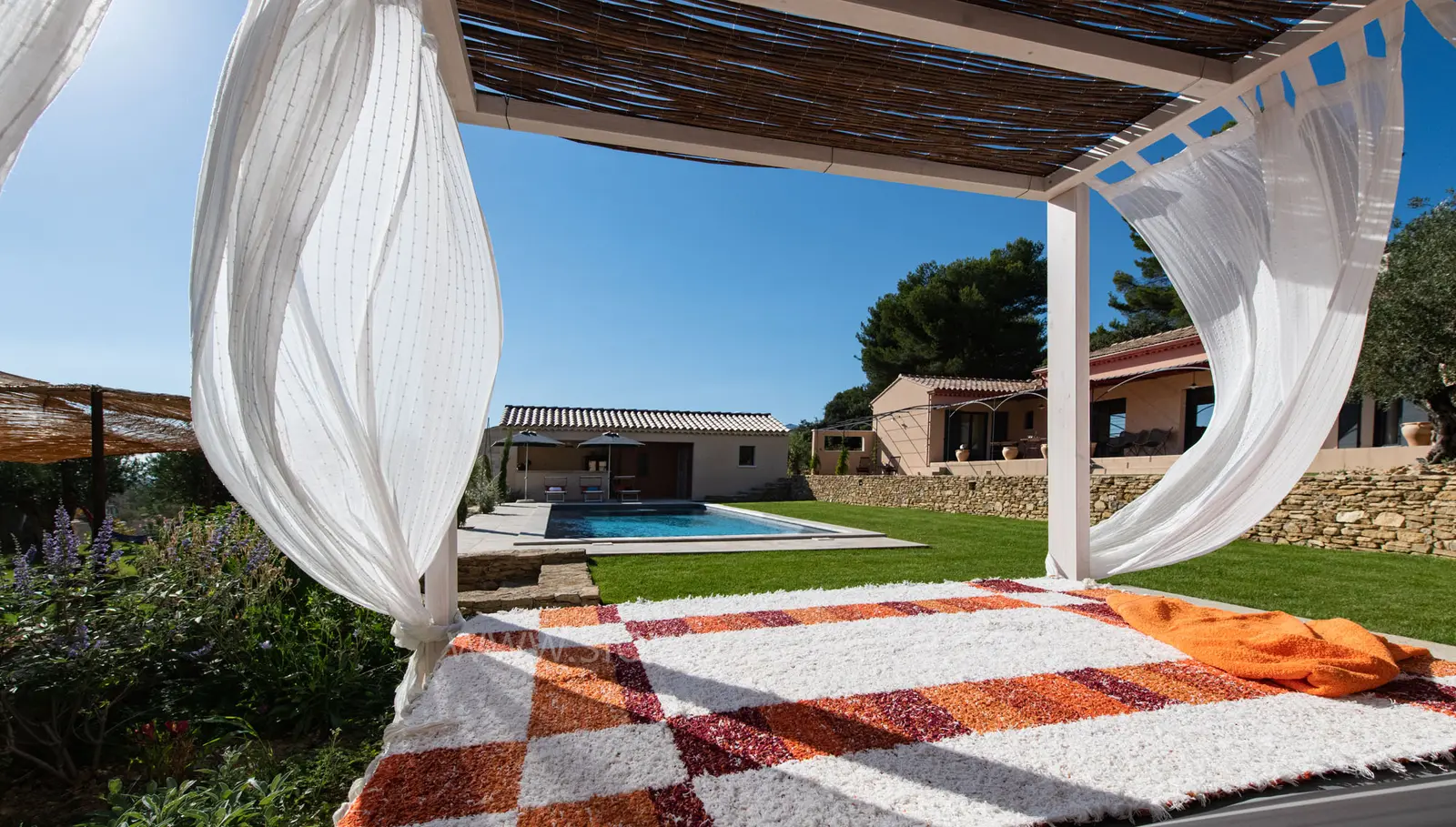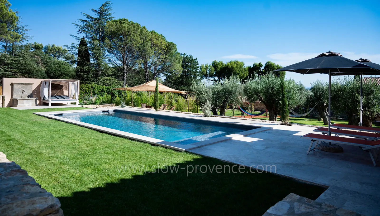With its large private heated swimming pool, jacuzzi and sauna, this beautiful modern villa welcomes you in a peaceful, green setting at the heart of a centuries-old olive grove, at the foot of the Dentelles de Montmirail. Bathed in natural light and decorated in warm southern tones, it offers an exceptional level of comfort for relaxing holidays.