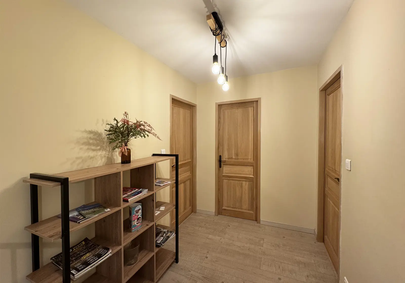 Entrée sur une grande pièce de vie lumineuse :