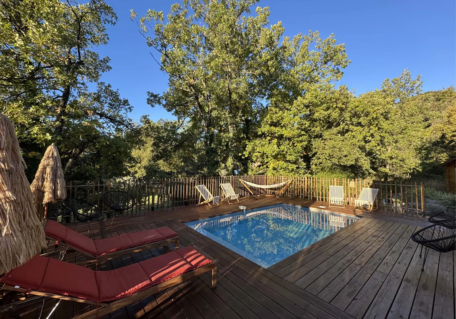 Au cœur d’un écrin de verdure, cette maison rénovée allie confort et tranquillité. Avec sa piscine privée chauffée, son vaste jardin en lisière de forêt et son environnement paisible, elle offre un cadre idéal pour se ressourcer et profiter pleinement de la nature. Située à seulement 5 minutes à pied du charmant village de Flassan, elle est parfaite pour des vacances en famille ou entre amis, et accueille volontiers vos compagnons à quatre pattes.