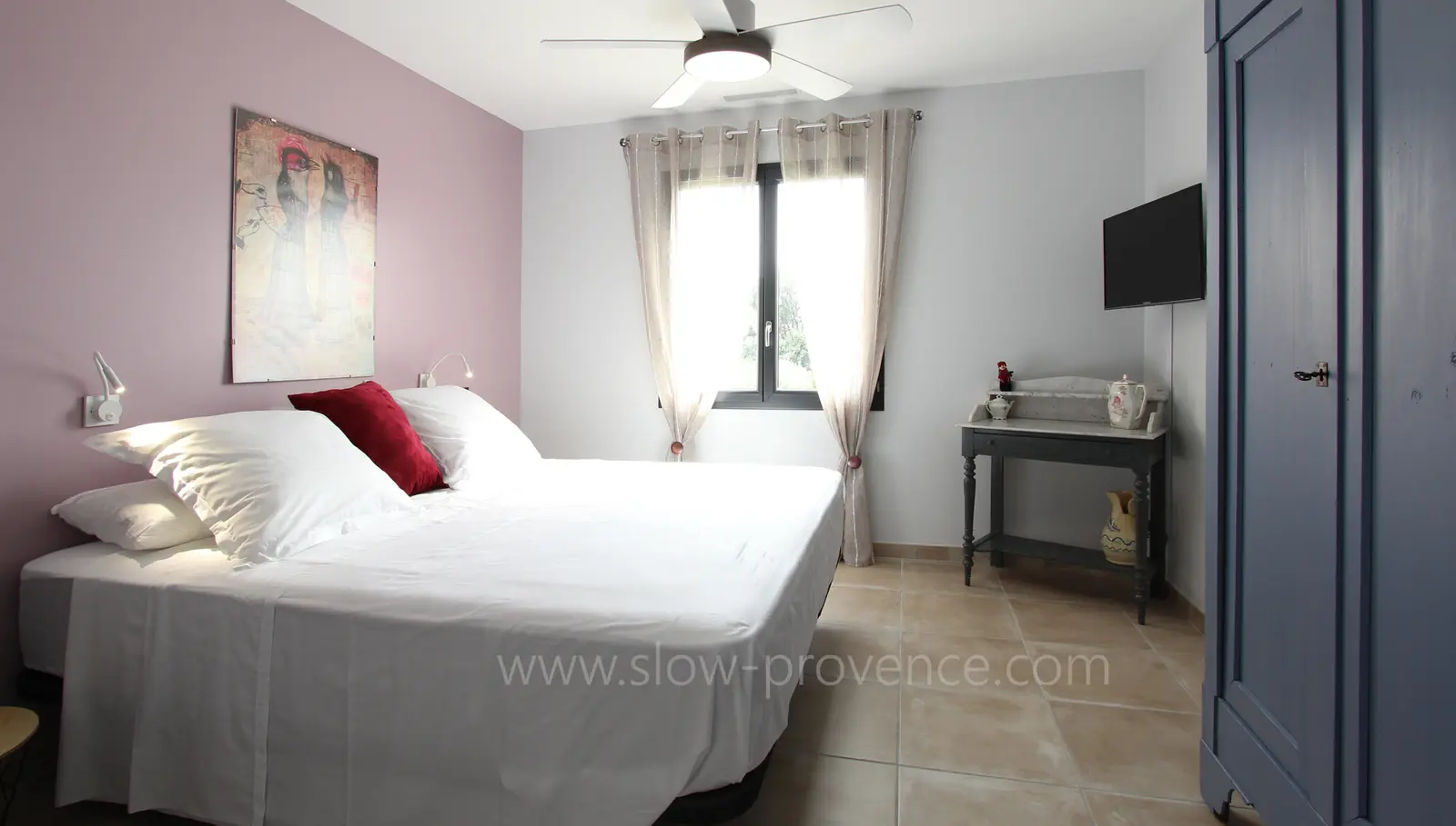 - Chaque chambre offre une literie hotelière et linge de lit haut-de-gamme, une TV et un ventilateur au plafond ;