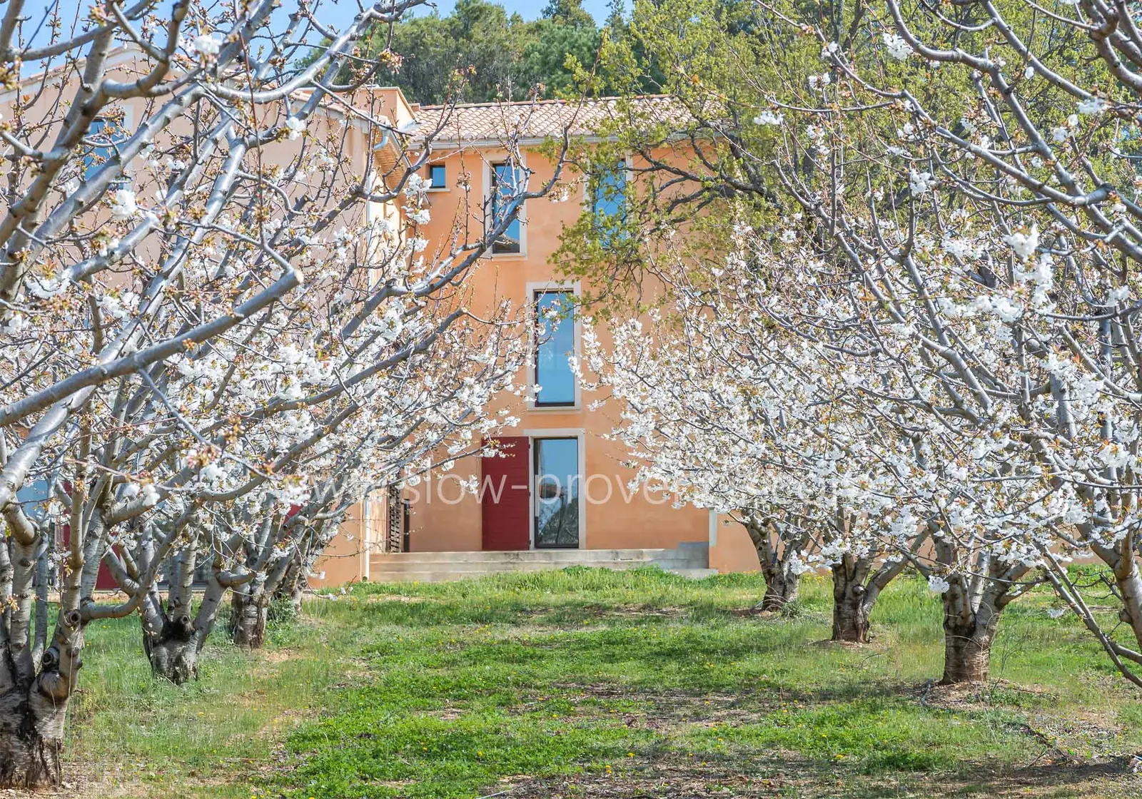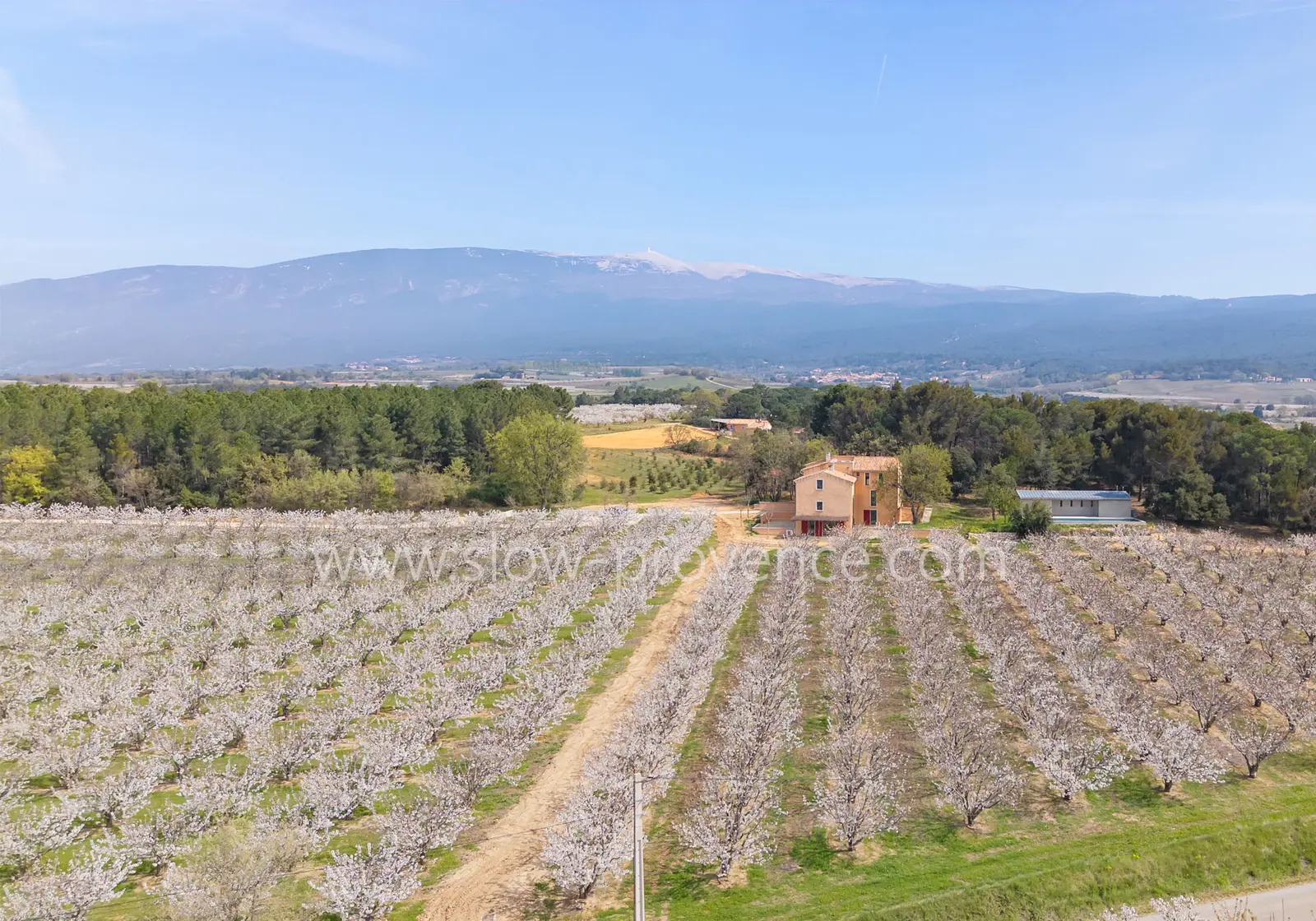 Au milieu des vergers de cerisiers au pied du Mont Ventoux, ce grand mas provençal intégralement rénové et à la déco contemporaine vous accueille dans un cadre idyllique sans voisin et face à une superbe vue sur les Monts de Vaucluse...