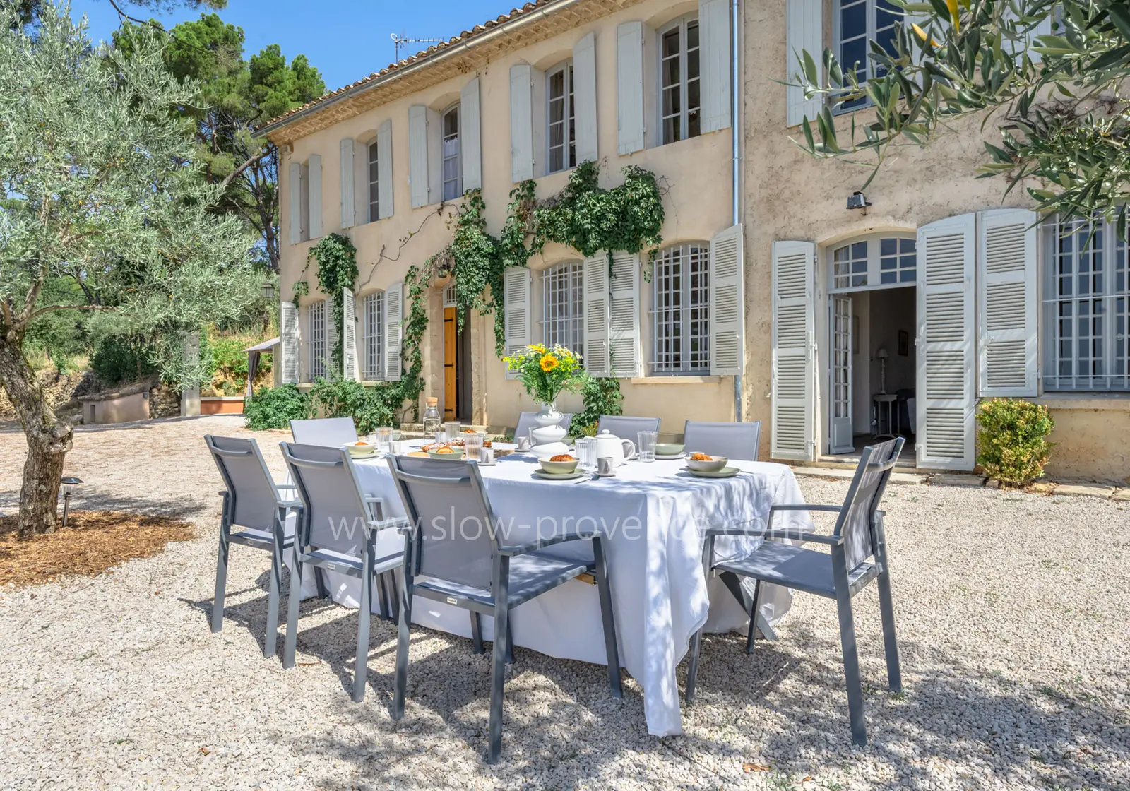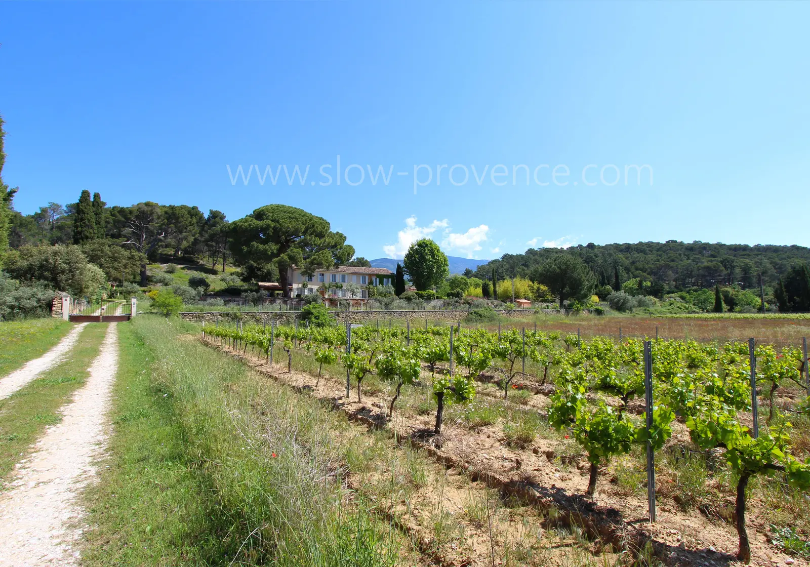 - Grand jardin provençal (non clos) arboré de pins, oliviers et vignes de 3 hectares ;