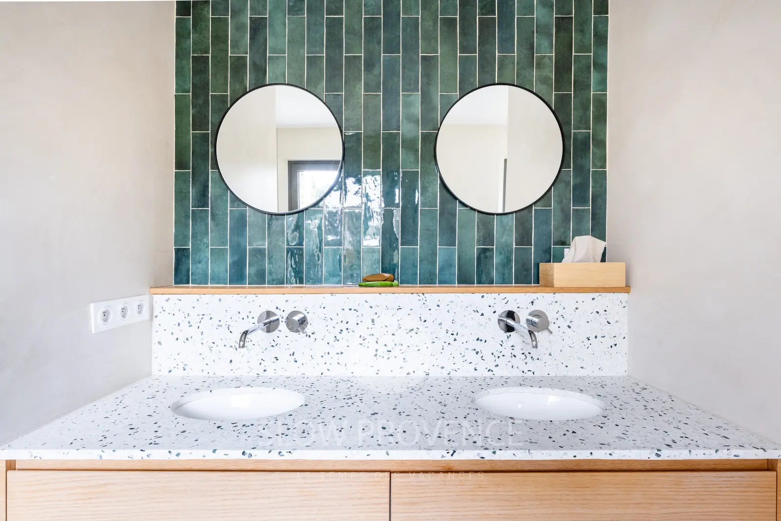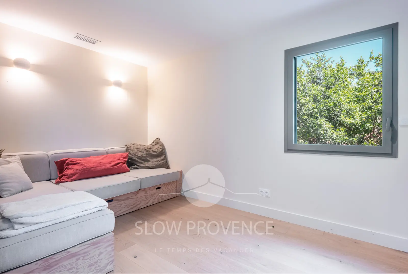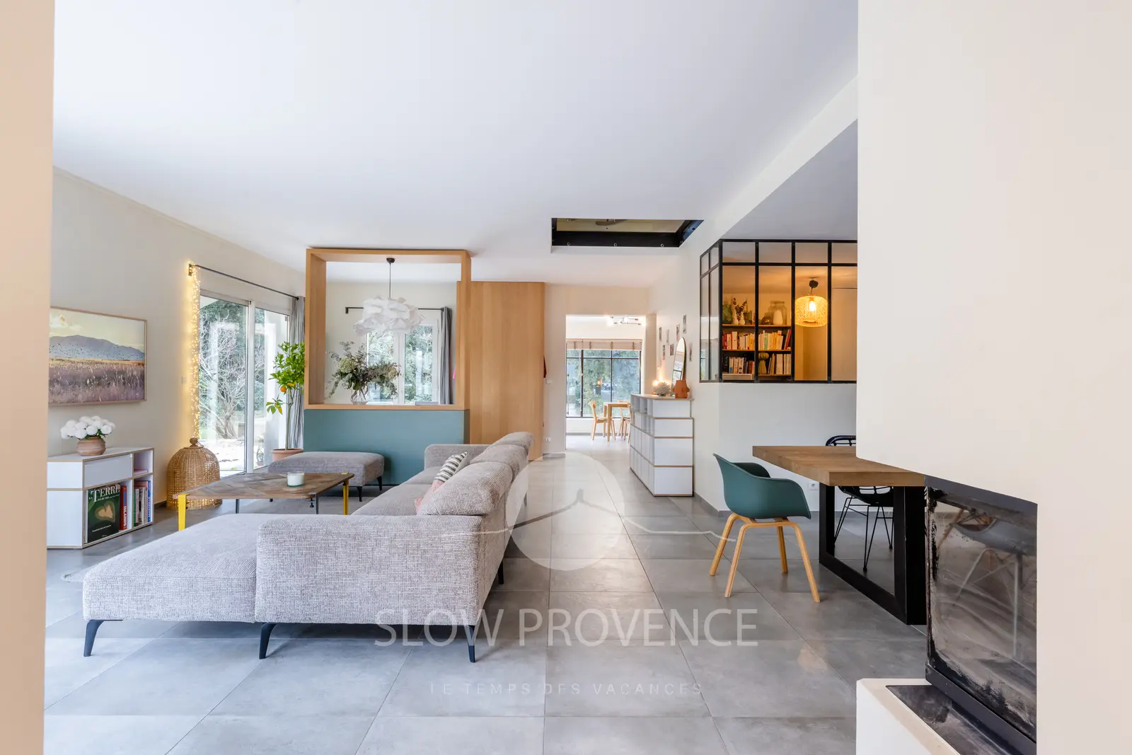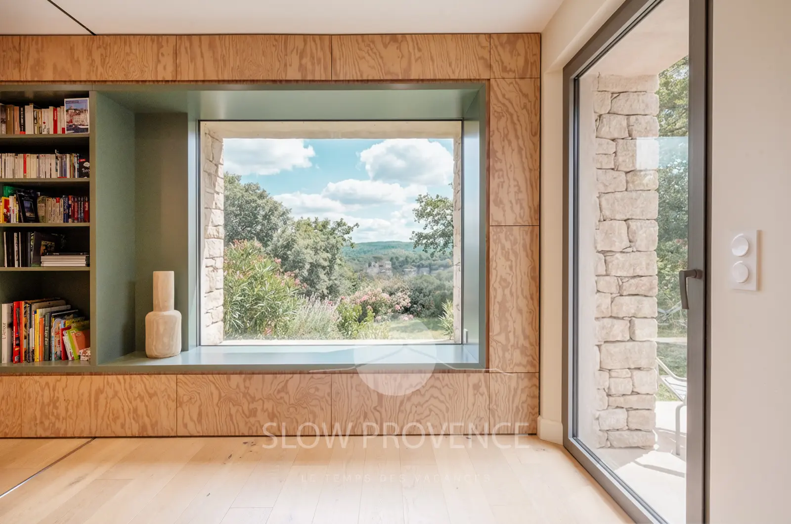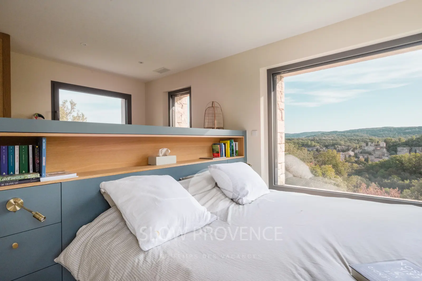 Les intérieurs, spacieux, épurés et baignés de lumière, sont meublés avec goût dans un style scandinave contemporain, pour un séjour tout confort dans un environnement paisible et typiquement provençal, au pays de la pierre sèche et des bories.