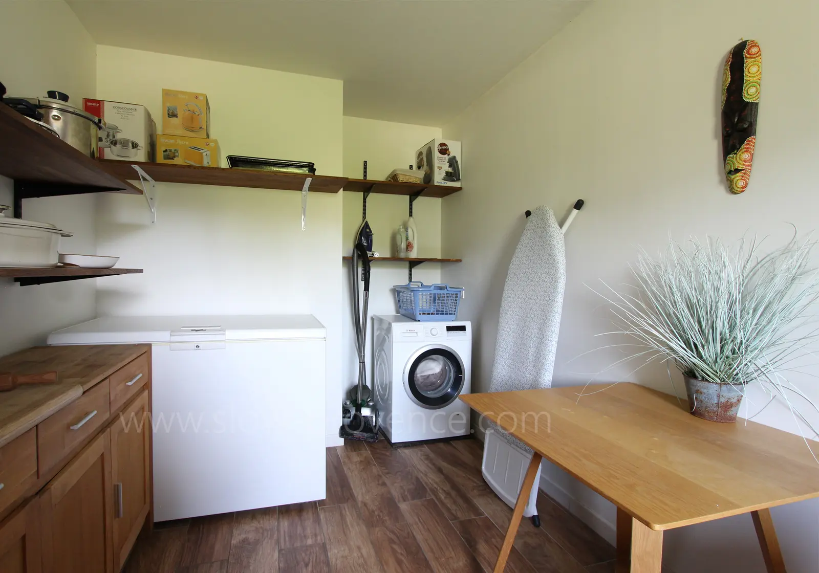 - Wasruimte : wasmachine, strijkplank en strijkijzer;