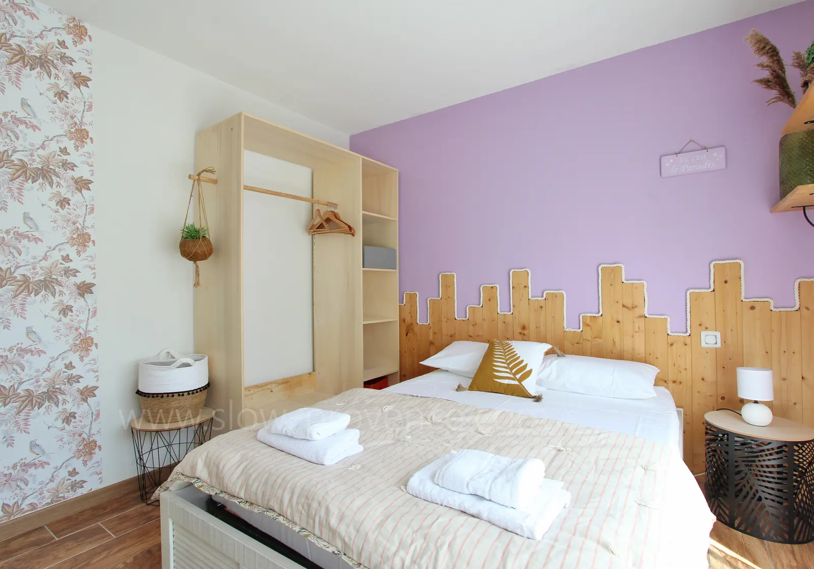 - Slaapkamer 2 : tweepersoonsbed (140x200cm), kleedkamer; toegang tot de tuin;