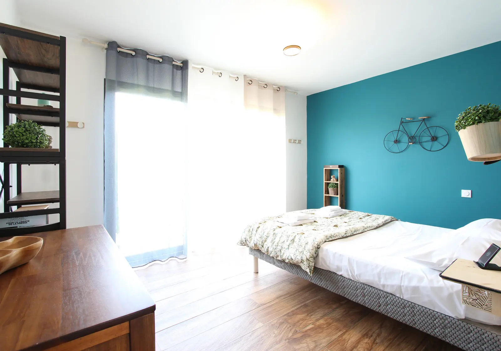 - Slaapkamer 3 : tweepersoonsbed (140x200cm), kleedkamer; toegang tot de tuin;