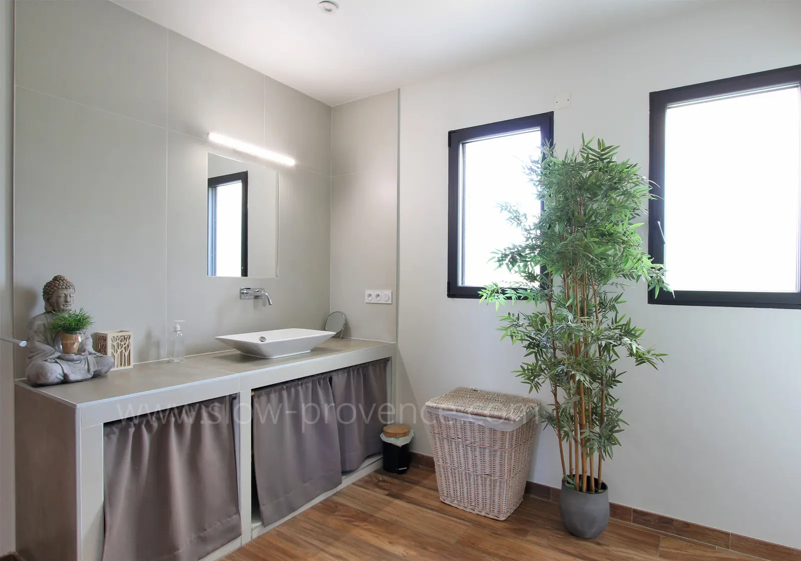 - Badkamer 2 : ligbad, dubbele wastafel, handdoekradiator;
