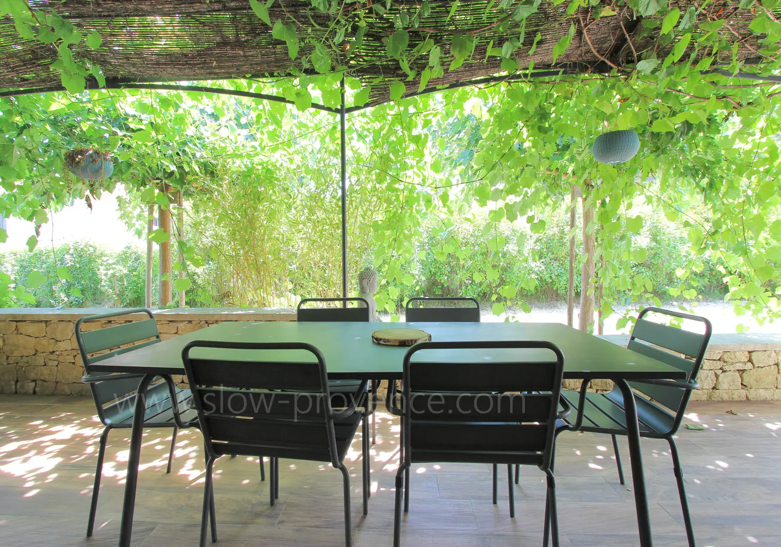 - Zuidterras : pergola, 2 tafels en 10 stoelen, fauteuils;