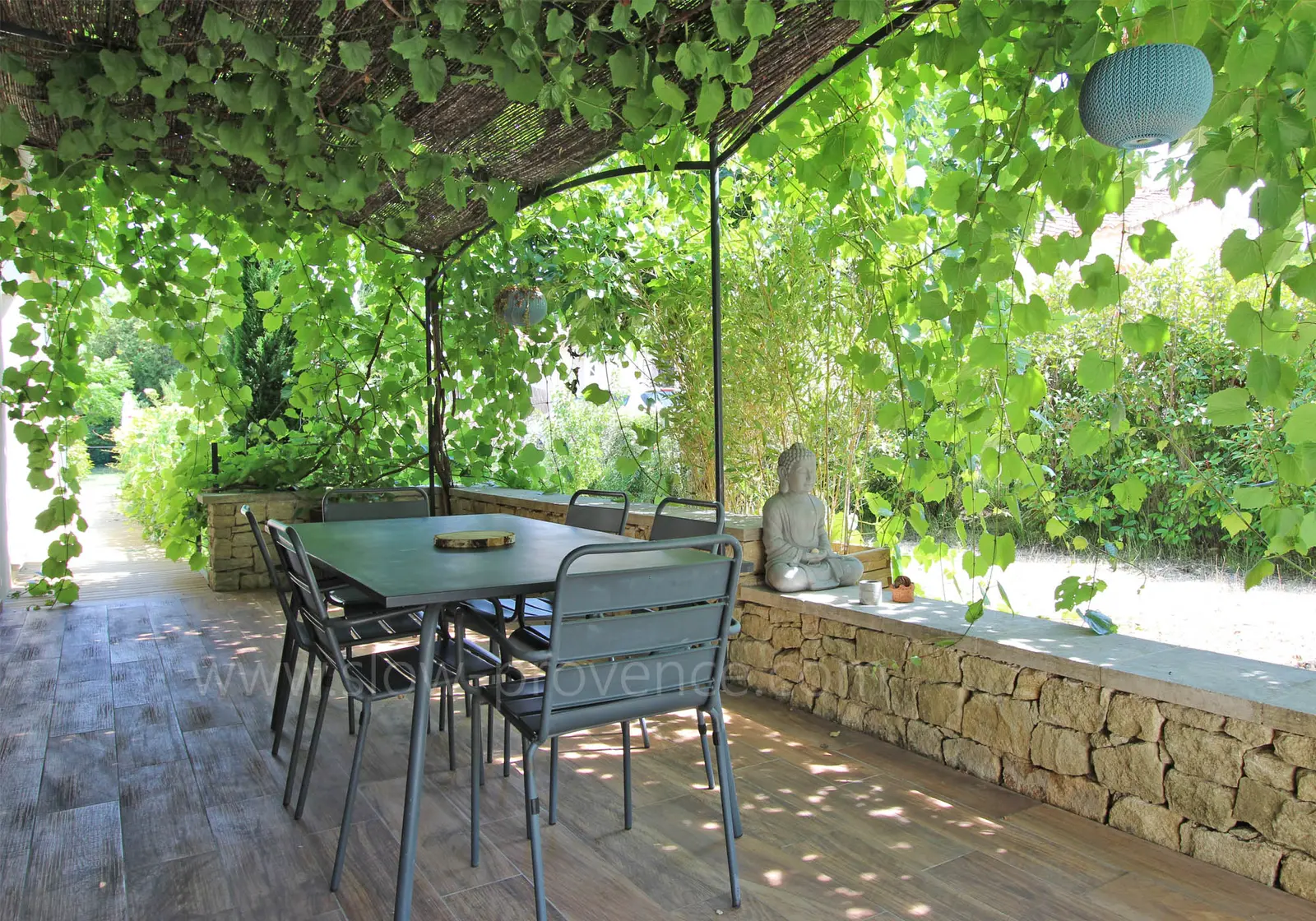 - Noordterras : tuinmeubilair met fauteuils en salontafel;