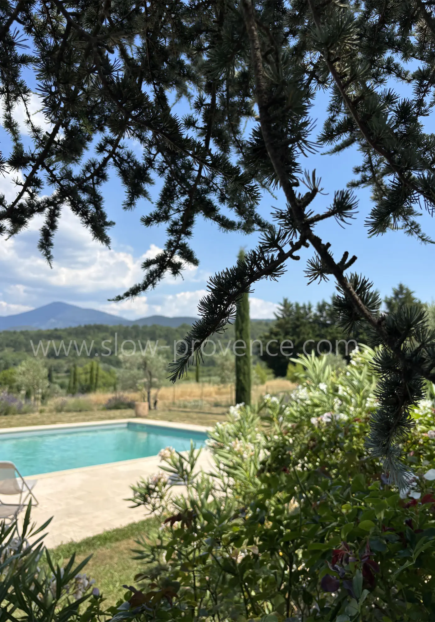 - Kamer 5 (15m²): groot tweepersoonsbed (180x200cm), inbouwkast, uitzicht op de Mont Ventoux; Eigen badkamer : bad, dubbele wastafel, handdoekverwarmer, föhn en toilet;